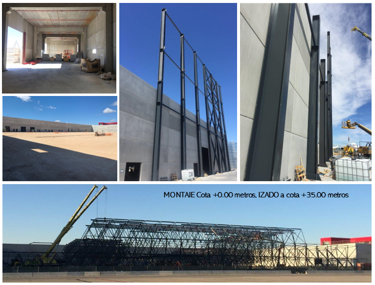 Hangar Interior height: 23,00 meters; Maximum hangar height: 35,00 meters; 141,00 Meters span.