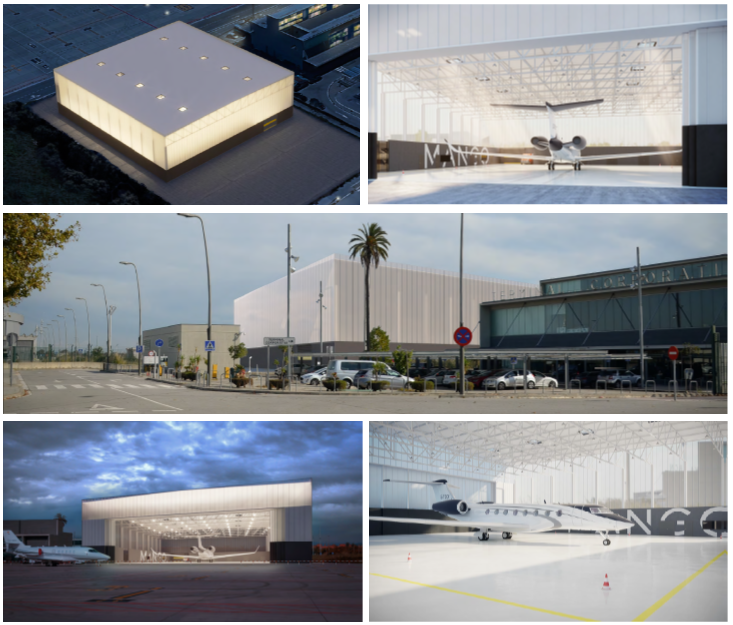 Hangar Interior height: 11,00 meters; Maximum hangar height: 15,00 meters; 40,00 Meters span.