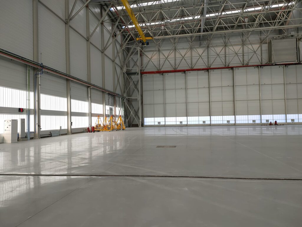 Hangar Interior height: 21,00 meters; Maximum hangar height: 30,00 meters; 80,00 Meters span.